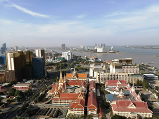 34階の部屋から見たメコン川とトンレサップ川の合流地点。