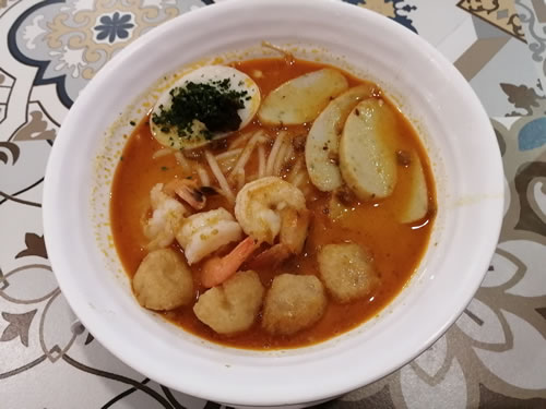 太太の大好物だったラクサ。ココナッツミルクベースのスープが辛口で美味。