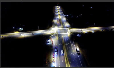 夜間照明点灯時のインターチェンジ。