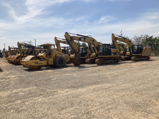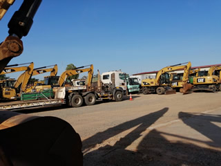 駐機場にはもう使わなくなったショベルカー、ローラー、ダンプ、ユニック車など重機が100台以上待機中。 来月には全て売却予定。