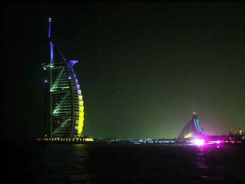 隣にある、世界で唯一の7つ星ホテルと言われる「ブルジュ・アル・アラブ」とさらにその先の「ジュメイラ・ビーチホテル」がよく見えます。