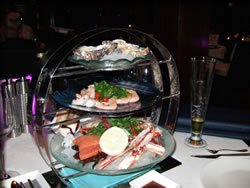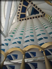 レストランの窓からは隣のジュメイラ・ビーチホテルや、先日行ったアル・カサール・ホテルのピアシックなどが遥かに見下ろせて最高のながめでしたが、数日前から急に湿度が上がったためもやが濃くなり、景色が霞んでしまっていたのがちょっと残念でした。 メニューはフライデー・ブランチのビュッフェのみでしたが、キャビアや生牡蠣、寿司などもあって種類も豊富、いままで食べたビュッフェの中では最高だったけど、値段の方もやっぱり最高でした・・・・ 一人495デルハムで約1万5千円、断食期間中なので昼はアルコール類のサービスがなく、飲み物は1.5?のミネラルウォーター(1,200円)のみだったので、これでも安くすんだほう。 ブランチ終了時間のぎりぎりまで太太と二人で粘ってまたまた高速エレベーターで一気にロビーへ。