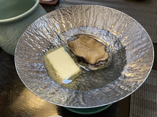 鮑のバター踊り。 ウニ飯。 上尾・ラーメンはやしの鯛塩雲呑麺。