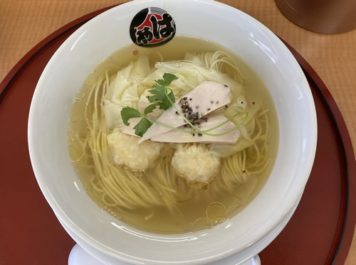 鯛の出汁と鶏のあわせスープ、蝦雲呑、鶏チャーシュー、麺も美味で1380円と高めの値段にも納得。