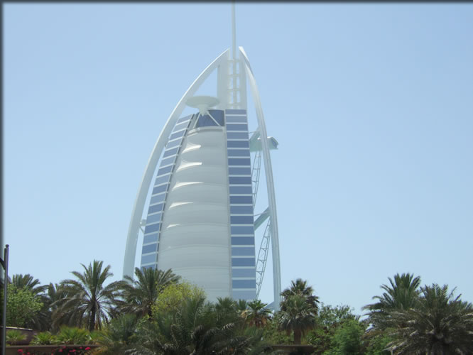 ブルジュ・アル・アラブの近景。このホテルは、ドバイ政府観光局の格付けによると「7つ星」の最高級ホテルとされる。