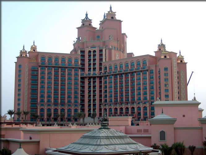 パーム・ジュメイラの先端(ヤシの木の天辺の部分)に位置するホテル・アトランティス。最上階のスイートは一泊250万円!