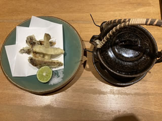 夜は「和肴ごとく」で松茸の天ぷら、土瓶蒸しなど。