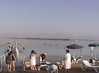 岩のドームが位置する神殿の丘を取り囲む高い壁。 この壁にモーゼの契約の櫃が納められていた神殿の残り。 (長さ50m、高さ20mの部分のみ) 創建時の建物は紀元70年ごろローマ軍によって破壊された。 そして、イスラエルの死海の写真。