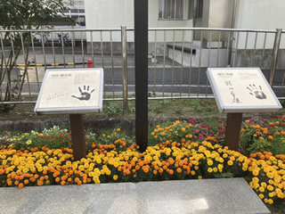 蜷川幸雄が初代芸術監督を務め、現在吉田鋼太郎が引き継いでいるとか。 与野西中学校正門前のアートストリートエリアには蜷川幸雄が演出した「彩の国シェイクスピア・シリーズ」に出演した俳優たちの手形レリーフが32枚並んでいる。