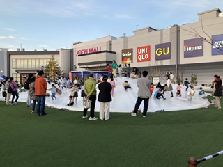 「AGEO PARK」は、イオンモールの平面駐車場をリニューアルして新たに作られた公園で、約3000平方メートルのスペースに、子供たちに大人気の「巨大ふわふわドーム」やアスレチック遊具、約80席の野外テラスなど施設が充実。