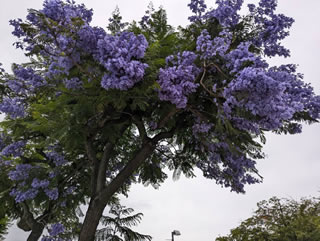 ケニアのジャカランダ並木には及びもつきませんが、貫一お宮の像の近くに咲く花は見ごたえがあったようです。
