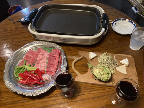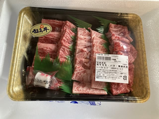 (現在/福島牛で夕食) 福島県民の日特別企画「おくる福島民報」プレゼント企画に応募したところ、見事福島牛が当選。