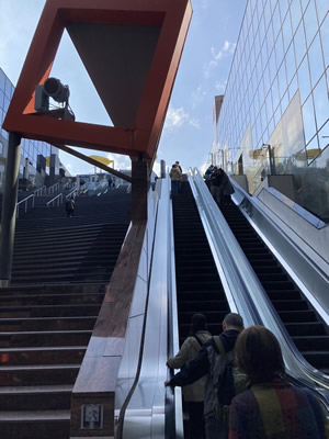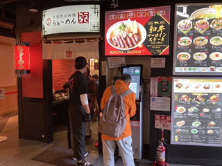 京都のラーメンは京都駅ビルのラーメン小路で。 駅ビル大階段のエスカレーターで10階へ。