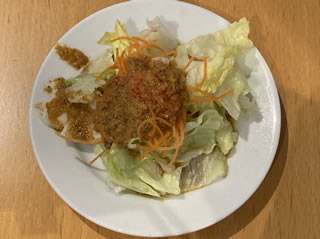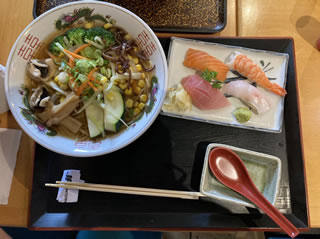 ここはミニサラダ付きで一杯15ドル(約2,200円)と、まあぎりぎりリーズナブルといえないこともない値段。 ぼくオーダーの焼豚ラーメン。焼豚の代わりに炙り鮪や炙りサーモンもチョイスできたので、そっちにしたほうがよかったかも・・