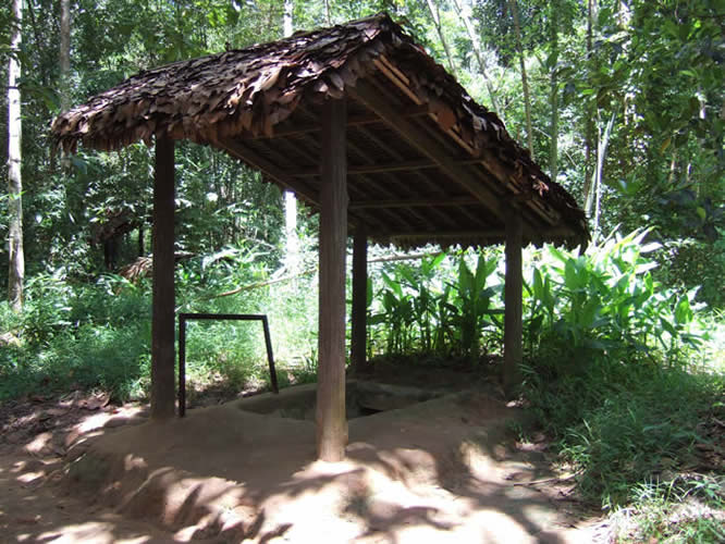 トンネルの入り口。写真で見ると地味そのものですが、ベトコンの構築した地下トンネルは全長200KMにもなり、あちこちトラップもあってやはりたいしたものです。
