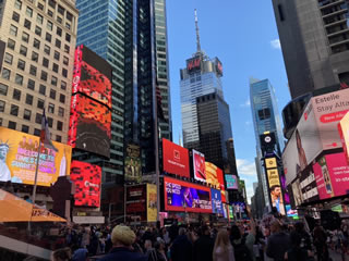 地下鉄のアプリ、NYC Subwayを必死で調べ、なんとか隣駅のQueensboro Plazaから7番線に乗り換えて42 Street駅まで行き、Lena Horne Theatreの場所を確認後、世界の交差点、大みそかのカウントダウンで有名なTimes Square周辺を散策。