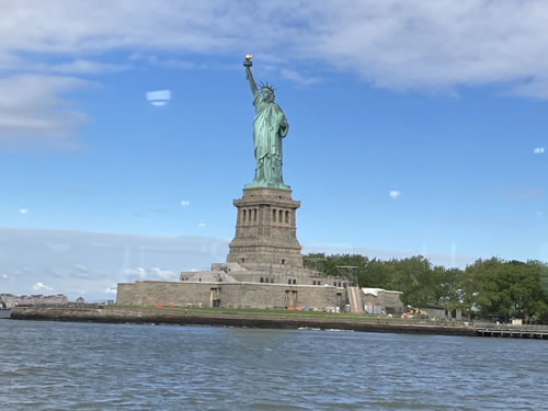 ミュージカルと同じあっとニューヨークでチケットを予約。 王冠まであがれるチケットは3か月前にすでに完売していて台座までのチケットを2枚ゲット。 5月24日朝、地下鉄を乗り継いでマンハッタン島の南端・バッテリーパークへ行き、9時発のフェリーで出発。