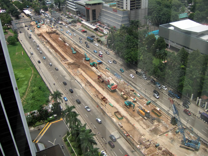 現在工事中のMRTプロジェクトの地下部(地下鉄部分)。あっちっち(若き精神の像)より北は地上に出て高架の上を走る。