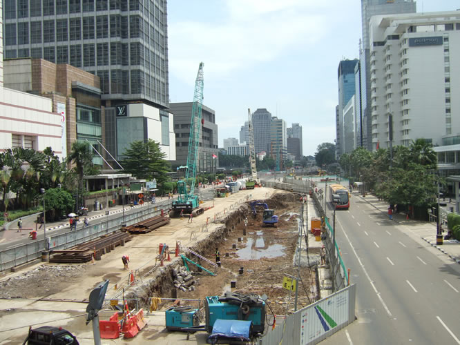再び工事中の写真。この北側、クローラークレーンの先のビルが日本大使館だ。