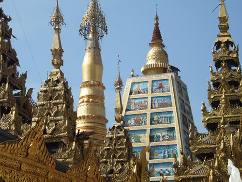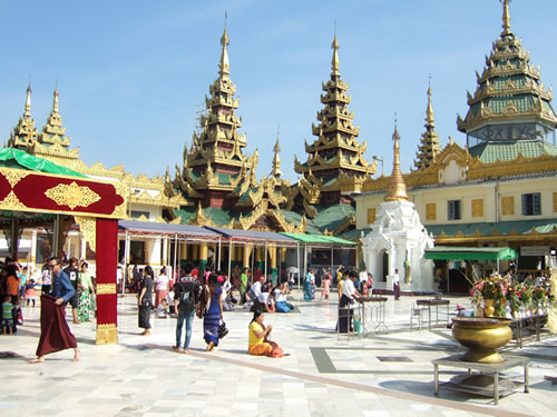 | ◆ ヤンゴンへ赴任 今回の年末・年始は久々に日本で過ごせるかと思いましたが、思いがけず9か国目の駐在国ミャンマーで年を越すことになりました。 さっそく太太も25日に来緬して1月3日までヤンゴンで過ごします。 9年前にシンガポールから出張で来た時に比べると空港もきれいになり、車も増え、建築中のビルも多いし何より日本の企業が押し寄せてきています。うちも含めてですが。 27日は太太とヤンゴン一の観光名所、シュエダゴン・パゴダに行ってきました。