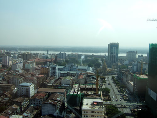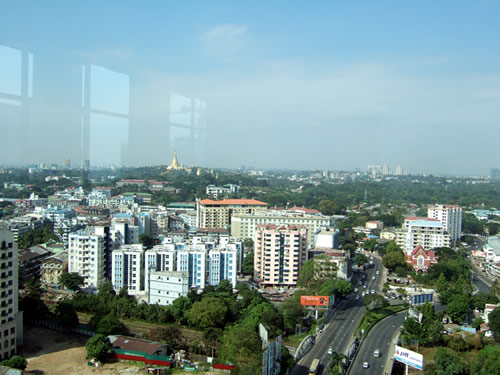 昼は都バスでちょくちょく東京駅辺りまで行き、八重洲駅地下のラーメンストリート等でラーメン(主に醤油系)を食べてました。 一番好きだったのはラーメンストリートから八丁堀に移った「七彩」の煮干(喜多方)ラーメンかな。 ここからが、ヤンゴンの風景。 サクラタワー14階のスカイビストロから見たダウンタウン中心部。 スーレーパゴダや独立記念塔が見える。