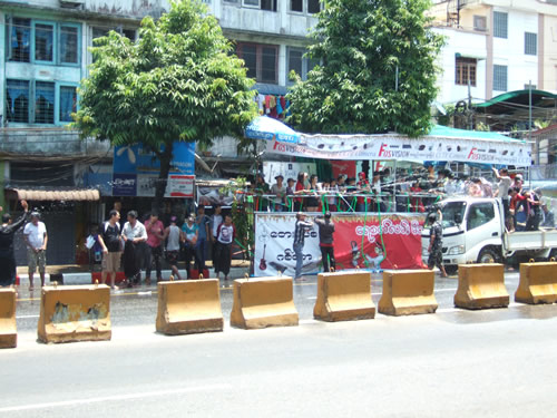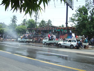 | ◆ 水かけ祭り これに合わせて太太も12日夕ヤンゴンに来て、20日の夜まで滞在していきました。 ミャンマー歴では4月17日が元旦になるのですが、12日から17日まではほとんどの店がクローズ。スーパーもレストランも閉まっていました。 昼間町を歩くと、そこら中でバケツやホースで水をぶっかけられます。