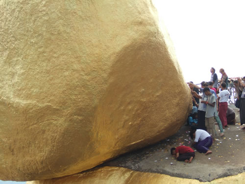 “チャイティーヨー”というのは『仏陀の頭髪の入った僧の帽子』という意味らしい。 男性の信者は岩の近くに行って触ることができる。僕も触ってきた。