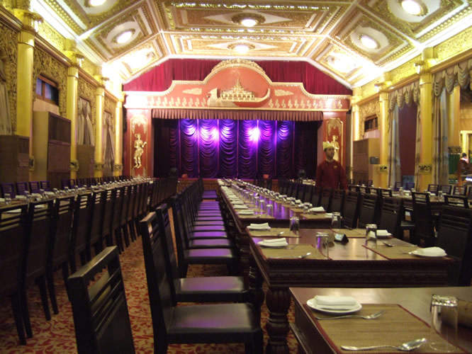 カラウェイ・レストランの内部。ビュッフェ・スタイルでショータイムもある。