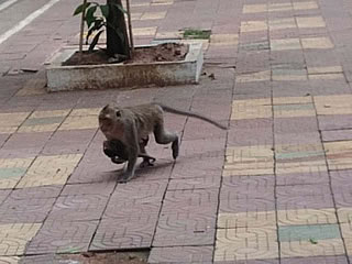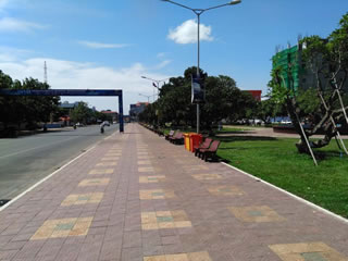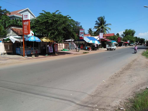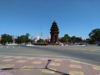 | ◆ カンボジア(柬埔寨)便り-2「コンポンチュナン」 この国道5号線をプノンペンから36キロ地点~120キロ地点まで改修するのが今回のプロジェクトで2022年4月完成予定です。 もうそろそろ引退するか日本で働こうかと思っていたところが、週6日フルで毎日10時間以上勤務しています。完成までもつかどうか・・・ 写真はコンポンチュナンの中心(City Garden周辺)に向かう国道5号線(沿線のZipang Caféは日本人経営の店)とCity Garden (南側にプノンペンの独立記念碑の縮小版あり)、その近くの公園に住み着いている猿の親子。 まずは、国道5号線の沿線の風景。