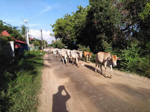最後の2枚は宿舎へ帰る道。 放し飼いの犬や牛、鶏がうろうろしている。