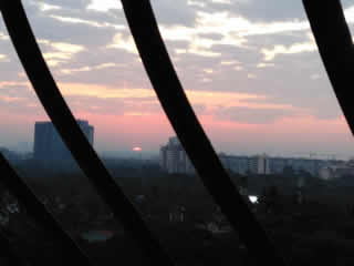 ビルのすき間からのぞく太陽。