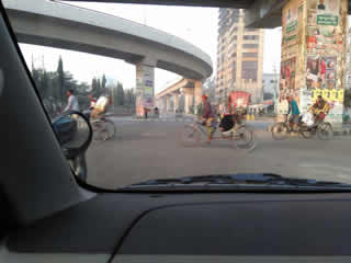 街中を走るリキシャの後ろ姿↓ こんなふうに、道路は車と三輪車、バイク、リキシャが入り乱れてもう無茶苦茶。
