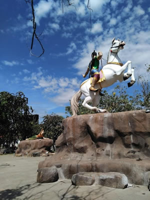 彼は、妻の持っていた目の治る薬を盗んで母たちのもとへ走ったが、これを追いかけた妻は途中で死んでしまった。 その場所が市街から北へ14㎞のところにあるニァンコングレイ山といわれる。 カニバリズムは本当は怖いグリム童話にもよく出て来るようですが何か救いのない話ですね。 時々観光バスが止まって彫像の前で記念写真を撮ったりしていますが・・・ (2019.12.7up)
