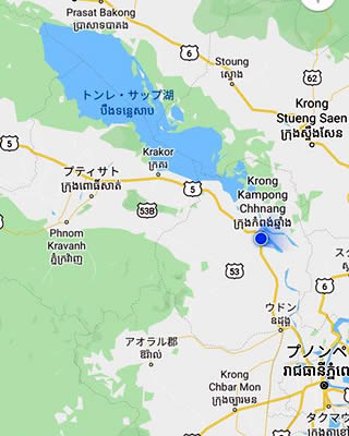 下はGoogle Mapのスクリーンショット。青い丸がぼくが住んでるコンポンチュナンの宿舎。