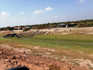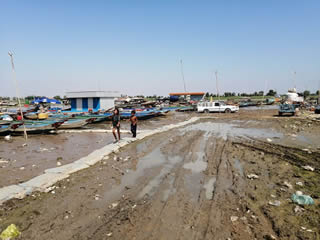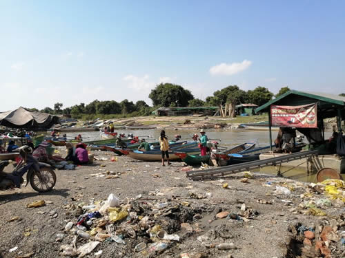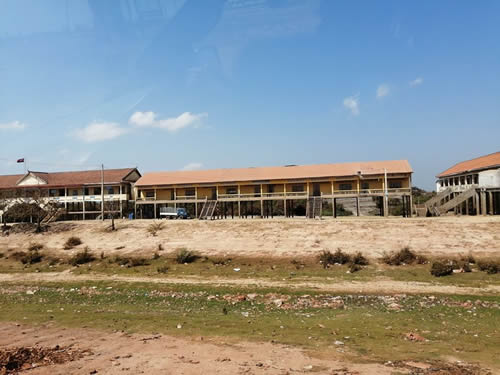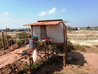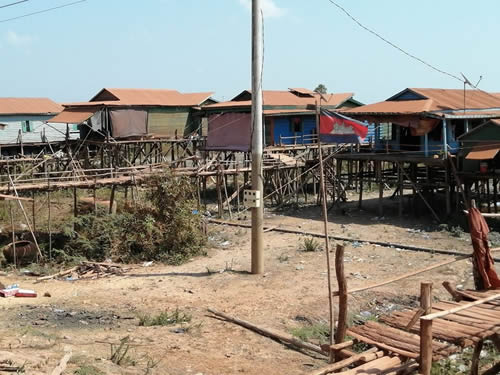 乾季で干上がっているトンレサップ湖南端のChhnok Tru。