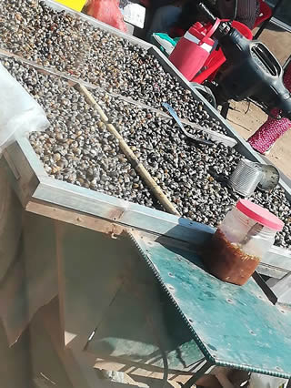 トンレサップ湖の貝。赤貝のようなシジミのような。