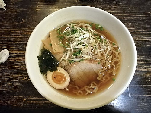 やっと食べることができた「忍者」の「あっさり魚介系醤油らーめん」 。 あっさりしてなかなかのお味でした。