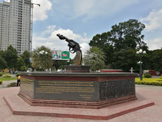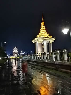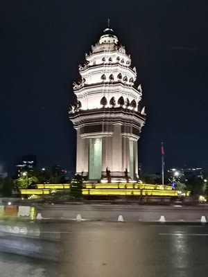 21日には茂木外務大臣が訪柬してフンセン首相と会談し、双方向の長期滞在者の往来を可能とする「レジデンストラック」を9月初旬から開始するよう要請したそうです。 他にもビジネス客や留学生の往来も規制緩和の方向で検討するそうで、これで現在9月末まで運休が決定しているANAの直行便が再開すれば10月には一時帰国で帰れるようになるかもしれません。 ほんとうになんとかしてほしいものです。 ということで、後は写真に沿って説明を。 まずは、夜のシアヌーク前国王像と独立記念塔。