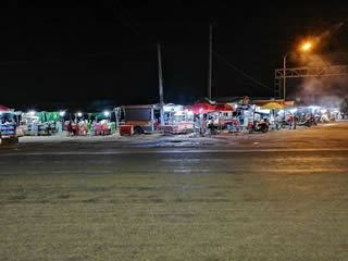 対面には屋台が並ぶ。