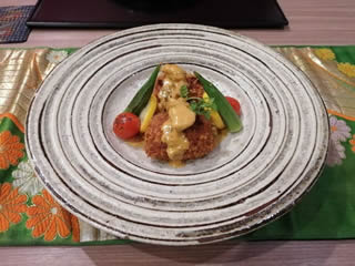 先週プノンペンで食べた雅楽のカニクリームコロッケ・ウニソース。