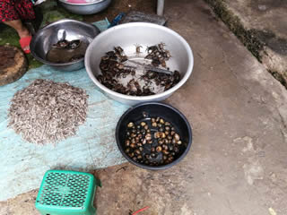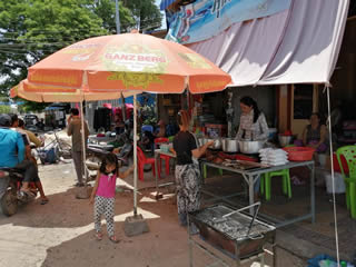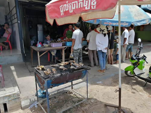 ローカルの食堂では雷魚や鶏を炭火で焼いて売ってる。 けっこうおいしそう。