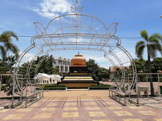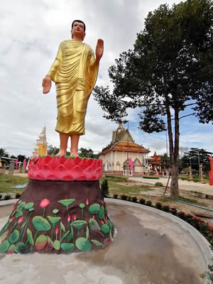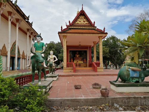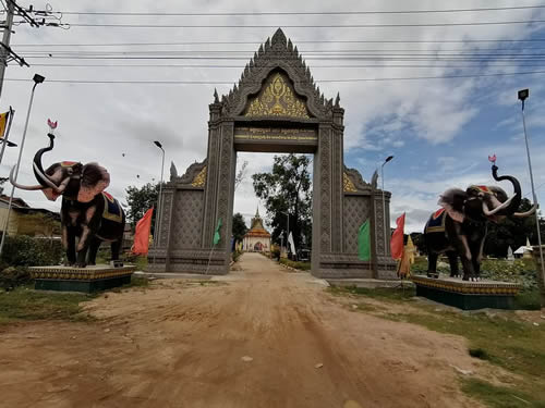 その前にプノンペン事務所の事務長が11月半ばヤンゴン事務所に異動(ヤンゴン事務所の事務長はバングラデシュの新規プロジェクトに赴任)、今月21日にカンボジア入りした入社3年目の新人と、現在バッタンバン教員養成所(日本の無償援助プロジェクト)に勤務する事務長がプノンペン事務所で業務引継をした後、12月半ばに新人の方がコンポンチュナンに来てぼくと引継をすることになります。 どちらもほとんど海外勤務の経験がないのでだいじょうかなあと思いますが・・・ 先週日曜日はまた犬に吠えられながらコンポンチュナンの街を散策し、公共事業省の大臣が現場視察に来た時によく食事をする「Daddy Daddy」に行ってみました。 昼食を摂ろうと思ったのですが、エビや魚のフライとか炒飯とかありきたりのアジアンフードしかなく、ワインもなかったのでビーフサンドをティクアウトして宿舎でワインを飲みながら食べることにしました。 ということで、写真に沿って説明を。 国道5号線沿いには大小さまざまな寺院が点在しています。 この写真はプノンペンから51キロ地点、当プロジェクトのサテライト事務所のすぐ近くにあるけっこう大きな寺院の写真です。