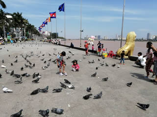 2010年11月22日、水祭り最終日の夜にはダイヤモンド島と本土を結ぶ橋の上で観客が折り重なって将棋倒しとなり347人が死亡する事故が発生し、フン・セン首相が「ポル・ポト以来最悪の事態」と語ったとか。 ひったくりやスリも多いようで、去年は日本大使館から日本人は現場に近づかないように通達が回るほどでした。 29日に現場に行ってみた所、今年は何の準備もされておらず川面は寂しかったですが、川沿いの公園では出店や物売り、ガイドの押し売りなども出ていて家族連れや友人グループなどでにぎわっていました。
