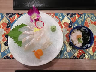 こちらは雅楽の平目の活き〆と白子ポン酢。 日本酒と最高のマリアージュ。