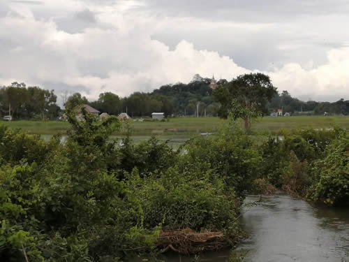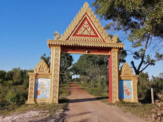丘の上の寺院と言えばプノンペンのものが有名だがこれもワットプノン(丘の上の寺院)。 国道からの連絡道路入口の門。