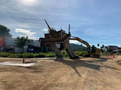 家族の絆や理不尽な状況にけなげに立ち向かっていく姿が切なくて竈門炭治郎の歌が流れるクライマックスのバトルシーンなど涙なくしてみることはできませんでした。 現実でもコロナという理不尽にさいなまれている今だからこれだけ心を揺さぶられるのかもしれませんね。 日本に帰ったらやはり大ファンだという小学生の孫二人を連れて映画を見に行きたいと思いますが、それまでコロナおさまっているでしょうか。 最近ますます涙腺がゆるくなっているので孫の前で泣いてしまって恥をかくかもしれませんが。 ということで、後は写真に沿って説明を。 前回に続いて国道5号線沿いの寺院の写真です。今回の寺はプノンペンから82キロ地点の東側の小さな丘の上にある寺院です。