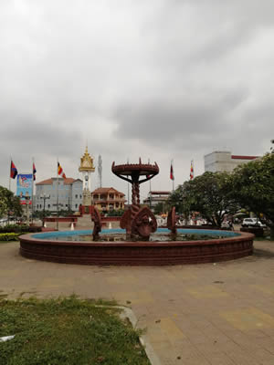 City Garden奥の蛇神ナーガの噴水とカンボジア-ベトナム友好記念碑。