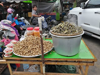 野生の猿が住んでいる州事務所ホール。 最近猿を見かけない。周辺で増えている犬に追い出された? コンポンチュナンマーケット。