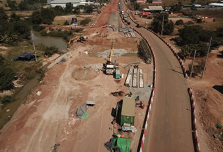 像のすぐ向かいの独立記念塔。 この先のCity Gardenはプノンペンの独立記念塔広場をコピーしている。