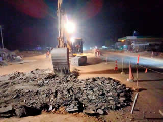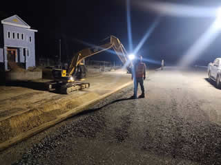 夜間も交代制で施工中。